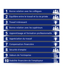 L’étude bat également en brèche certains a priori des entreprises belges. En effet, les employés du monde entier veulent avant tout avoir de bonnes relations avec leurs collègues et supérieurs, ainsi qu’un bon équilibre entre le travail et la vie privée.