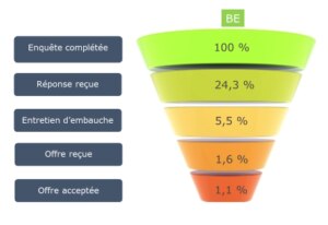 En Belgique, nous remarquons une différence entre les populations francophones et néerlandophones. Le nombre de réponses reçues pour les néerlandophones est plus élevé que pour les candidats francophones : 28 % contre 22 %.