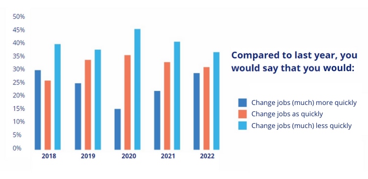 Graph 2: Evolution intent job/employer change over the years – from: employee survey Talent Pulse 2022