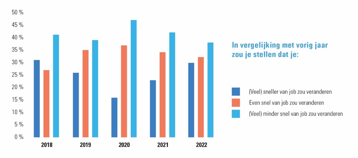 Figuur 2: Evolutie intentie job/werkgever-wissel over de jaren – uit: werknemersbevraging Talent Pulse 2022